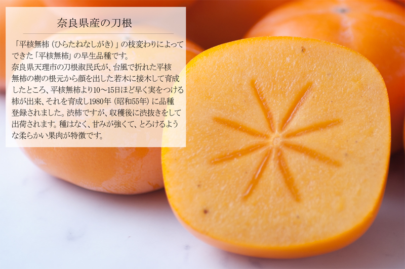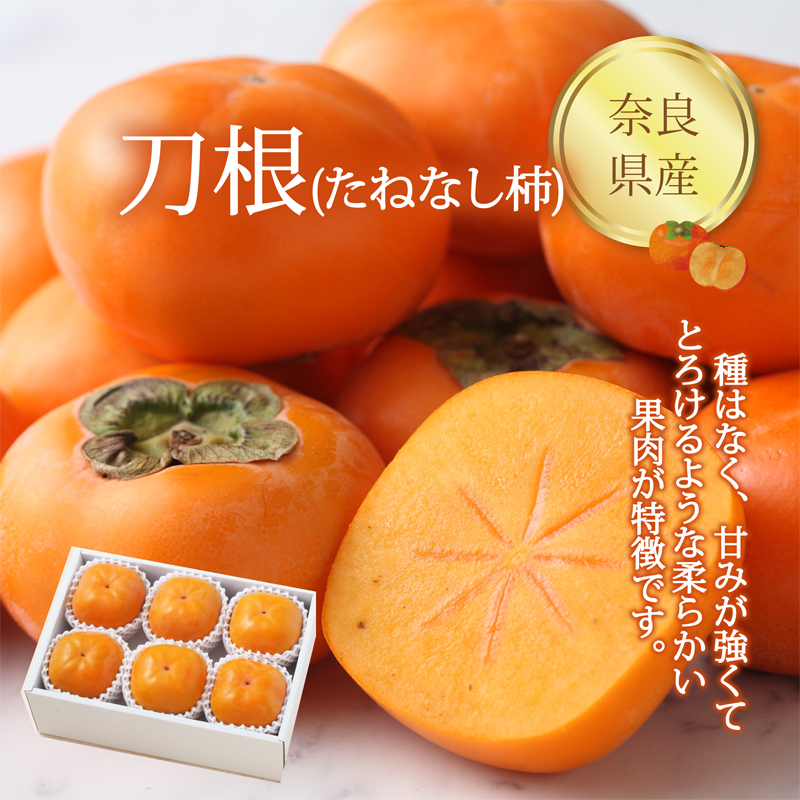 【ネットストア限定】奈良県産 刀根柿(たねなし柿) 6個入(1.2kg) 種はなく、甘みが強くて、とろけるような柔らかい果肉が特徴です。