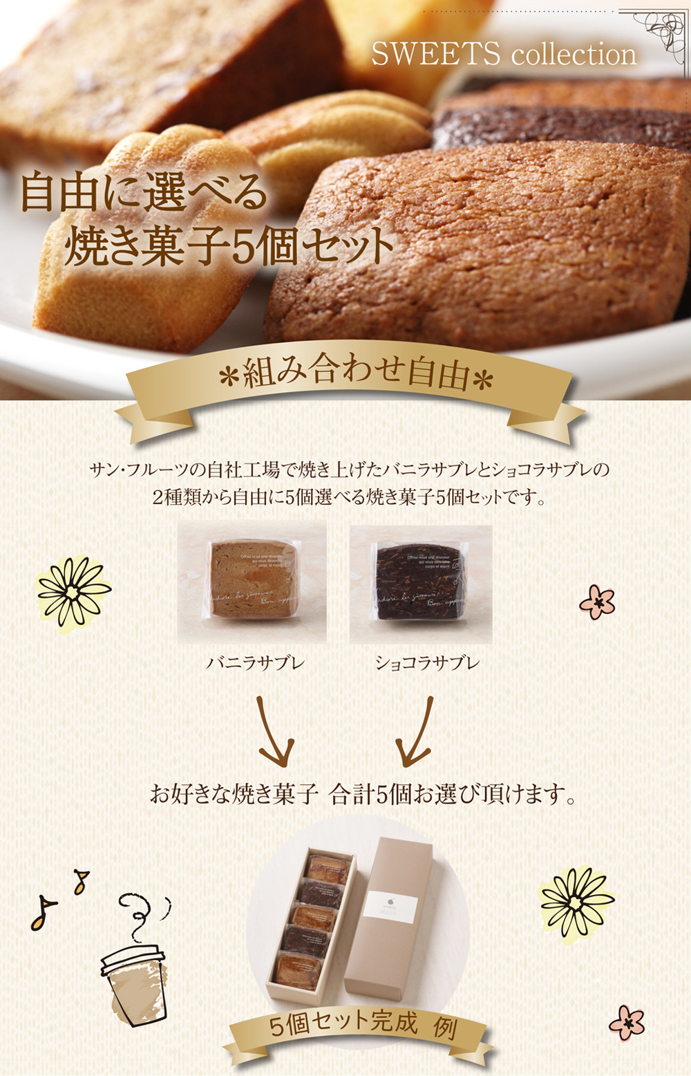 ギフト 贈り物《組み合わせ自由》2種類のサブレから合計5個お選び頂けます。焼き菓子(サブレ)5個セット